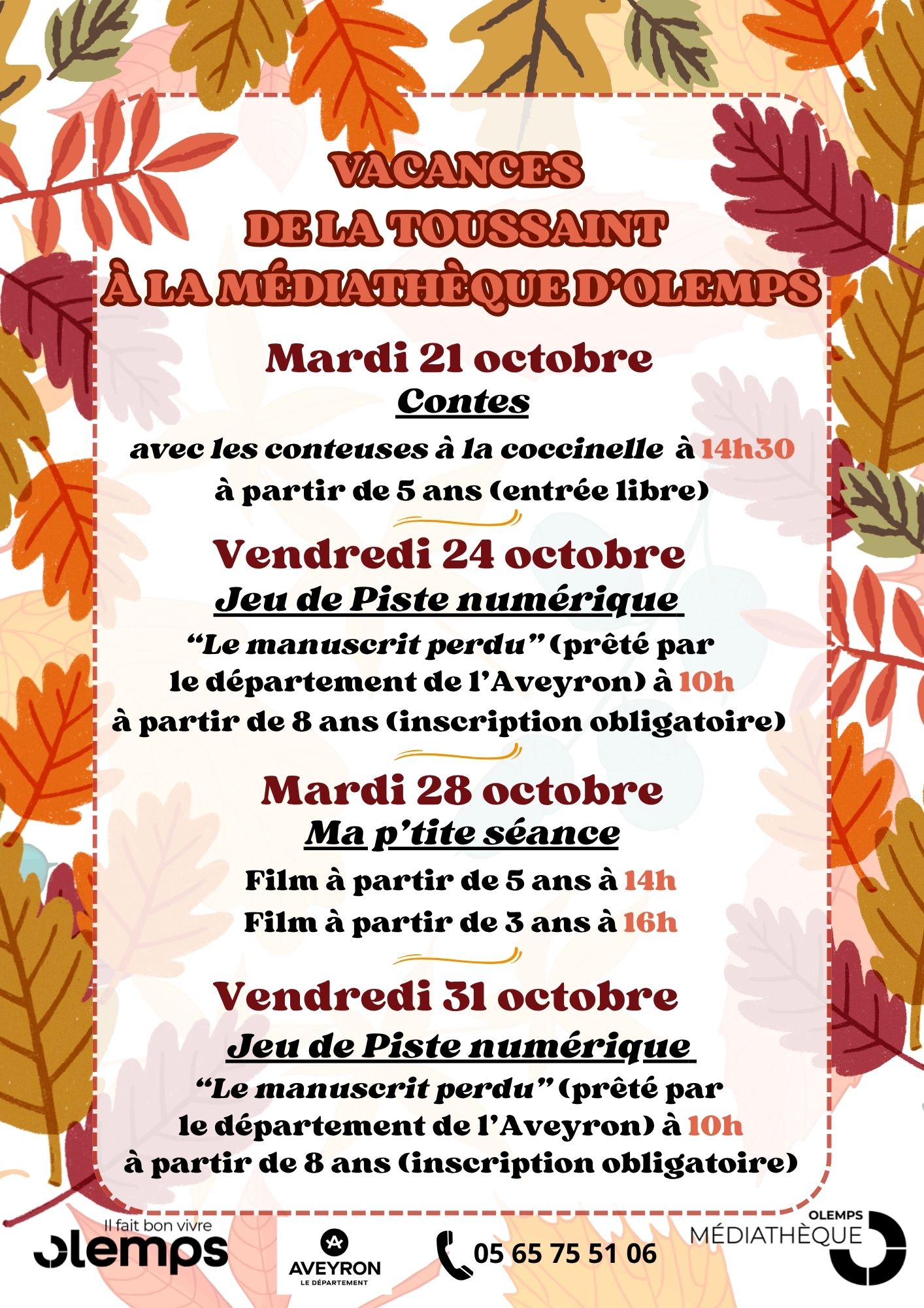 Vacances de la Toussaint à Olemps à la Médiathèque d'Olemps