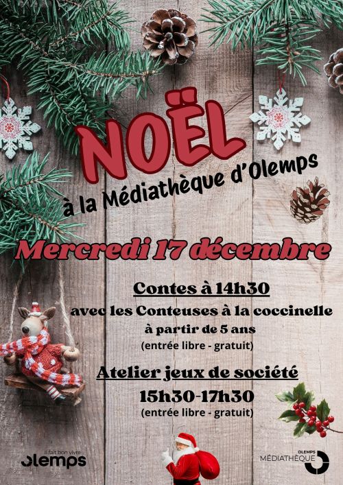 Imprimer Noël à la médiathèque d'Olemps... Afficher les options de partage × Partager Détails des prochaines sessions Le mercredi 17 décembre 2025 de 14:30 à 18:00 Tout public Olemps Accès libre et gratuit Evénements publics Contes Jeux